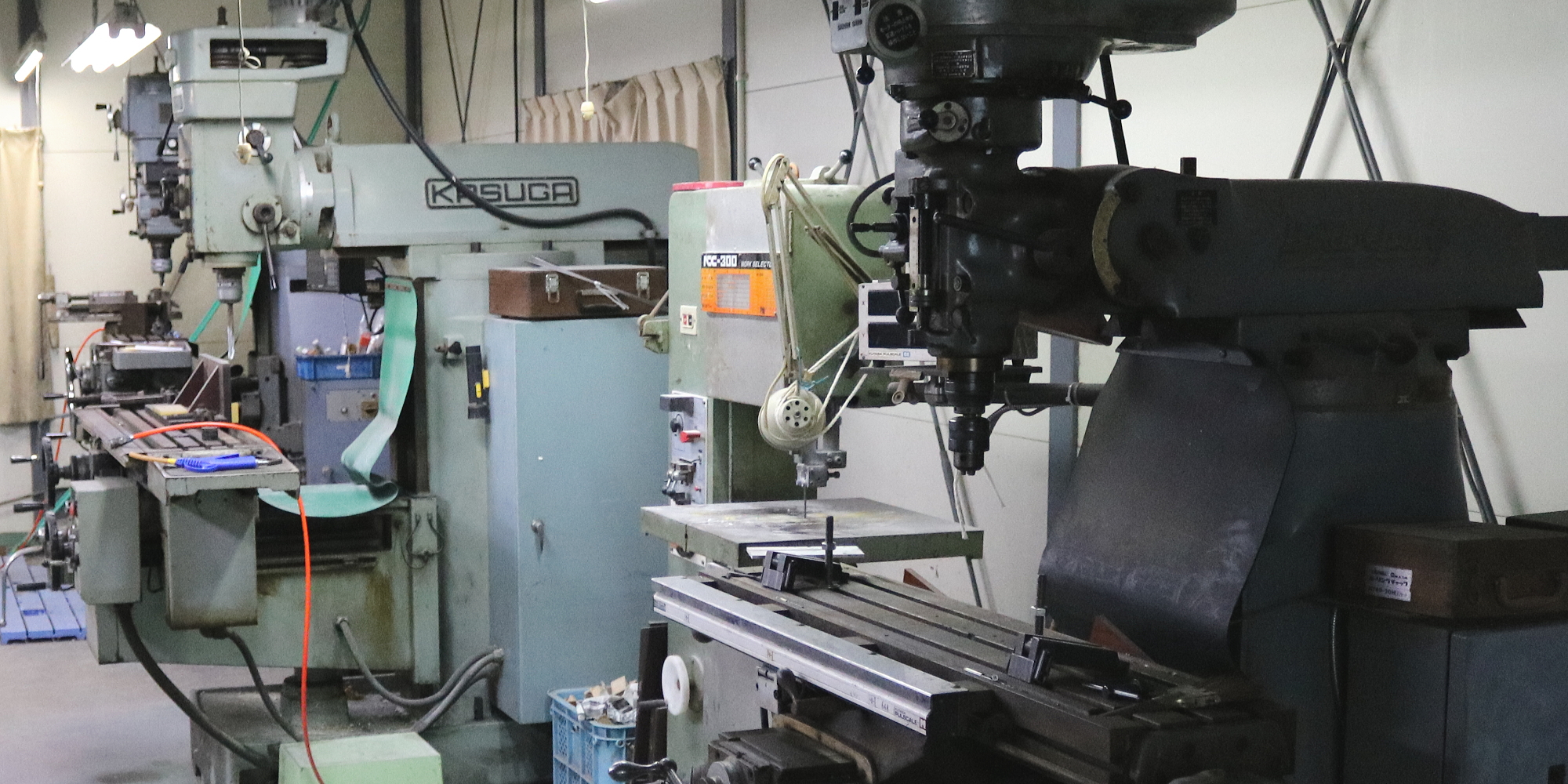 フライス盤 3台、旋盤(6R) 1台、小型フライス盤 1台、手動彫刻機 2台、ショットブラストマシン 1台、バンドソー1台。